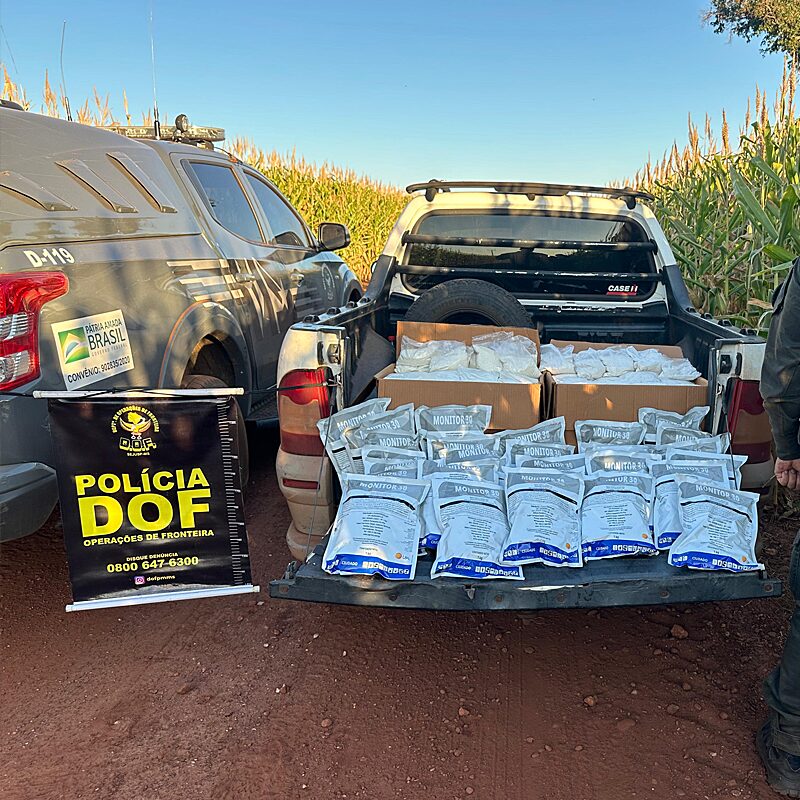Na carroceria da Strada foram encontrados 40 quilos e 29 litros de defensivos agrícolas contrabandeados do Paraguai. O material apreendido, avaliado em aproximadamente R$ 105 mil, foi encaminhado à Polícia Federal em Ponta Porã.