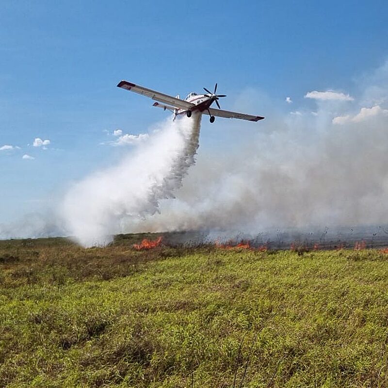 O trabalho de combate aos incêndios florestais no Pantanal, em Mato Grosso do Sul, realizado pelo Corpo de Bombeiros, ocorre em diferentes áreas do bioma há 77 dias. Com a intensificação de focos de incêndio, há uma semana, as ações ganharam reforços da aeronave ‘air tractor’ – desde terça-feira (11) –, que lança água em locais de difícil acesso e ainda desempenha importante papel de reconhecimento das chamas. Pelos rios, os bombeiros atuam para resgatar ribeirinhos e também para chegar aos locais onde as chamas ameaçam residências.