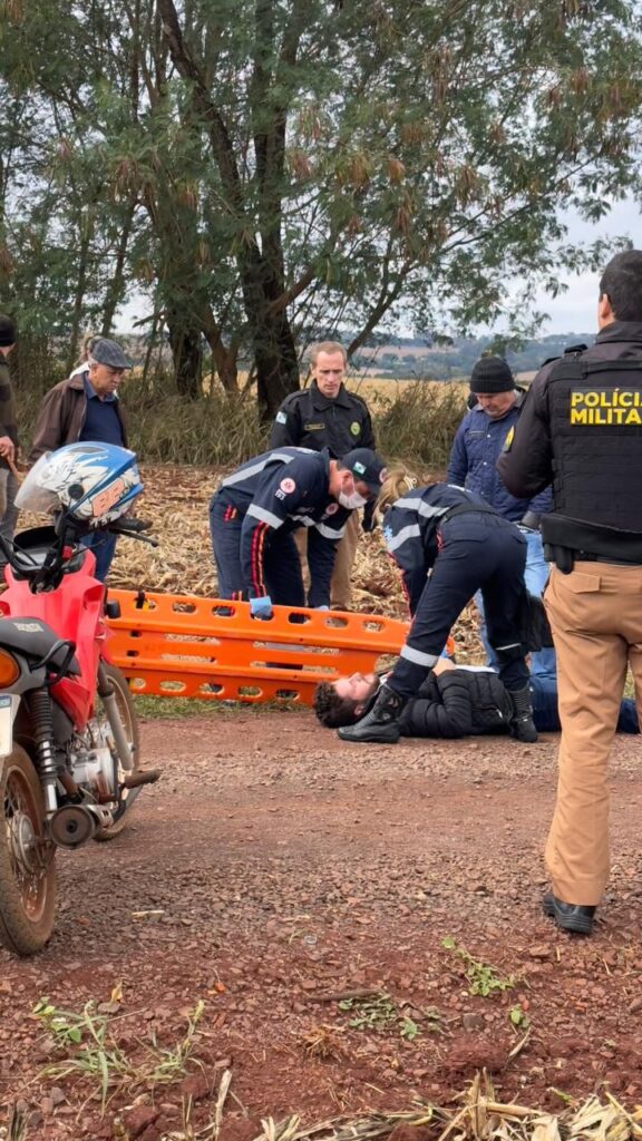 Uma das imagens acima mostra o filho do proprietário da fazenda sendo atendido pelo serviço de atendimento móvel de urgência, após levar um golpe com um pedaço de madeira na cabeça. Ele foi encaminhado para o hospital da região.