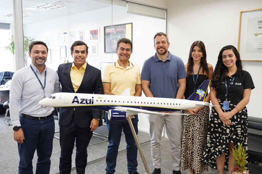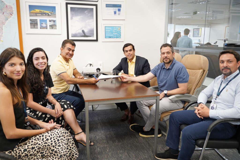 Legenda – Prefeito Marçal Filho e deputado federal Beto Pereira reunidos com a diretoria da Azul para discutir a volta das operações no Aeroporto de Dourados