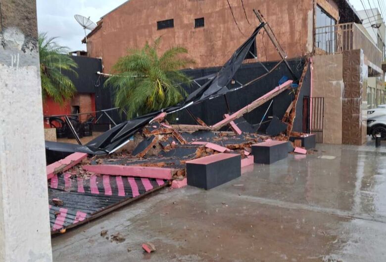Galhos e árvores caíram em alguns pontos e a carroceria de um caminhão que estava estacionado próximo a uma empresa foi atingida.