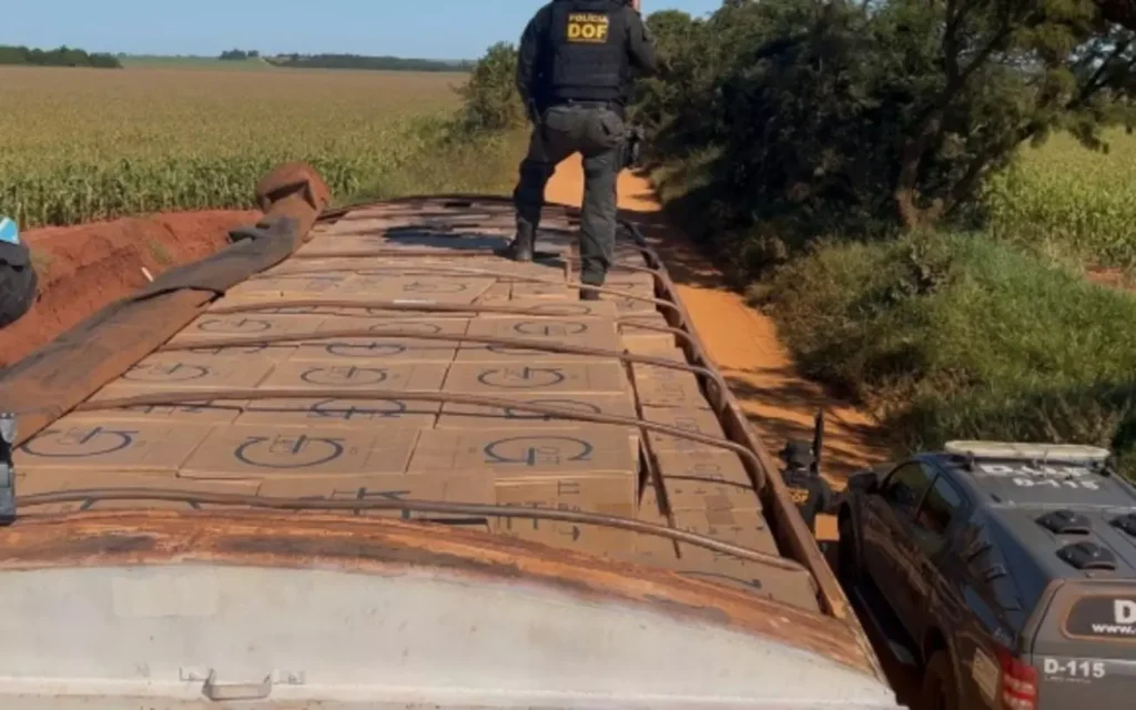 Durante diligências, a carreta foi encontrada abandonada próxima a um milharal. Em vistoria na caçamba, foram encontrados 42,5 mil pacotes de cigarros contrabandeados. Buscas foram feitas na região, mas nenhum suspeito localizado. O material apreendido, avaliado em aproximadamente R$ 2,3 milhões, foi encaminhado à Receita Federal de Ponta Porã.